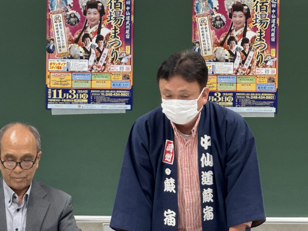この日は、関係各所の方々をお招きして、実行委員会組織図(案)と宿場まつり開催要項(案)について話し合われました。また、宿場まつり実行委員会、各部会担当よりご説明をさせて頂きました。