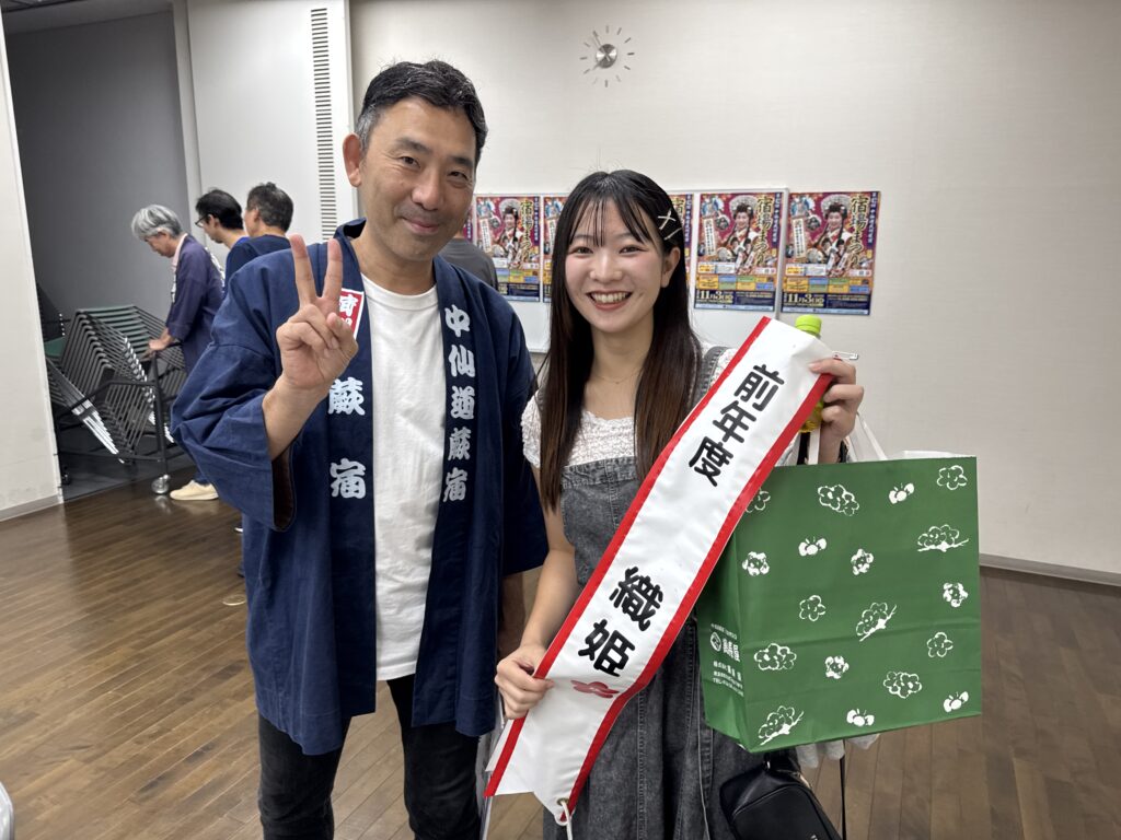織姫宿場小町募集活動を今年から担当してくれました。😆SNSをはじめ、各イベントにてのチラシ配りなど精力的に活動をしてくれています。当日は、織姫宿場小町の皆さんのサポート役もしてくれます😀
