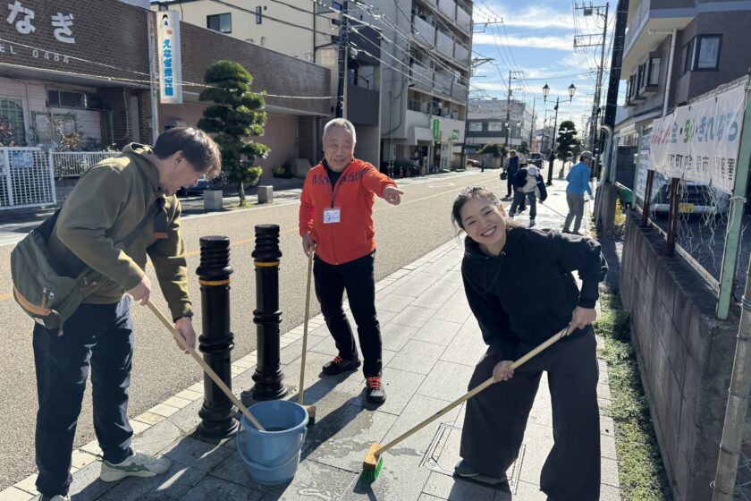 宿場まつり当日は、終わるころには暗くなってしまうのでゴミ拾いしかできません。翌日朝9時から、宿場まつり実行委員会メンバー、蕨市観光協会と蕨市役所の皆様も一緒に、毎年恒例の『中山道を綺麗にし隊』集合です。ゴミ拾いもそうですが、洗剤を使いデッキブラシでゴシゴシしました🧹