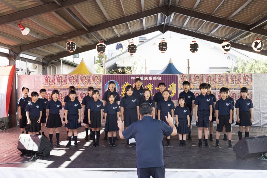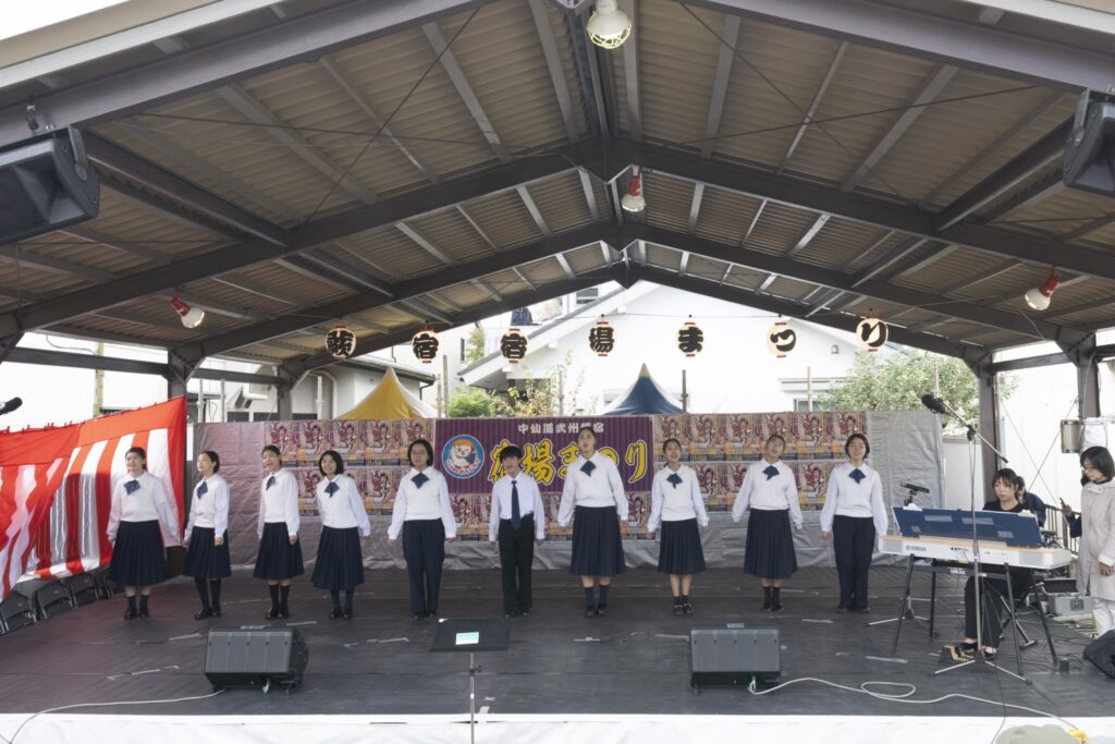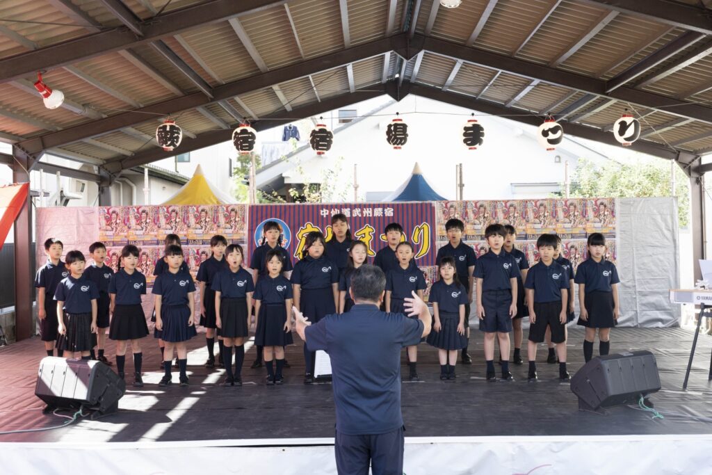 こんにちは!蕨市立第一中学校音楽部です。私たちは、感謝の気持ちを忘れずに、聴く人の心に響く歌を目指して日々練習に励んでいます。毎年、コンクールにも多数出場しており、歴史と伝統のある部活動です。今回の宿場まつりでは、コンクール曲からポピュラーソングまで幅広く演奏します!どうぞお楽しみに