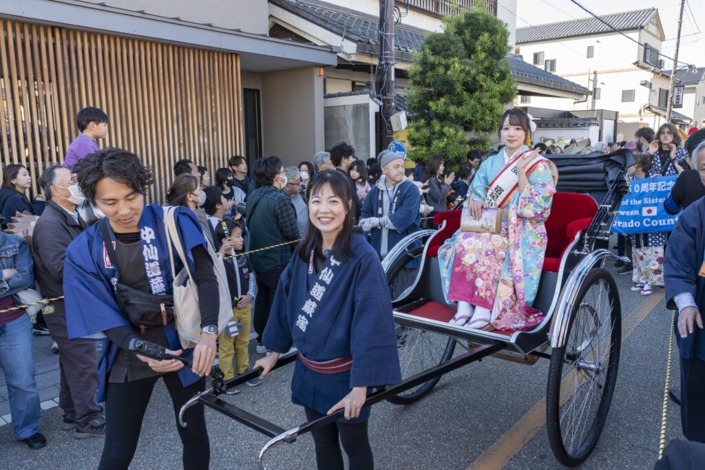 Misa( 大利弥里 )さんが、ご自身の人力車でパレードに参加してくれました👏👏