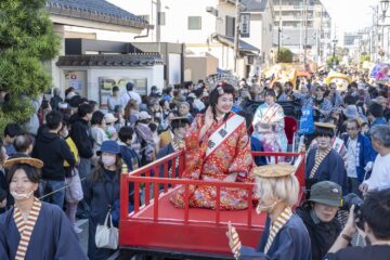 宿場まつりのメインイベント『織姫・宿場小町道中大行列!!』 先頭は、蕨市と災害協定を結んでいる湖西市からお越しくださいました、浜名湖大太鼓新宮連合会の皆さんです。露払い役をお願いしました。 【日本一の大太鼓】直径が7尺8[…]